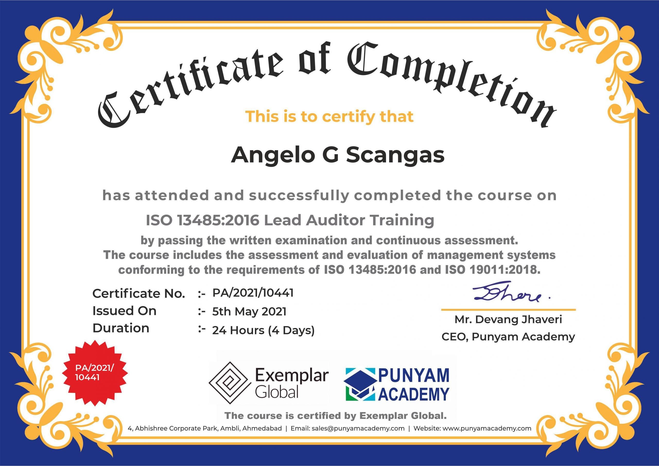 Angelo is a senior member of the American Society for Quality (ASQ), a CQA (ASQ Certified Quality Auditor), a Certified (Exemplar Global) Lead Auditor for ISO 9001:2015, AS9100:2016, IATF 16949:2016 and AIAG Supplier Auditor.